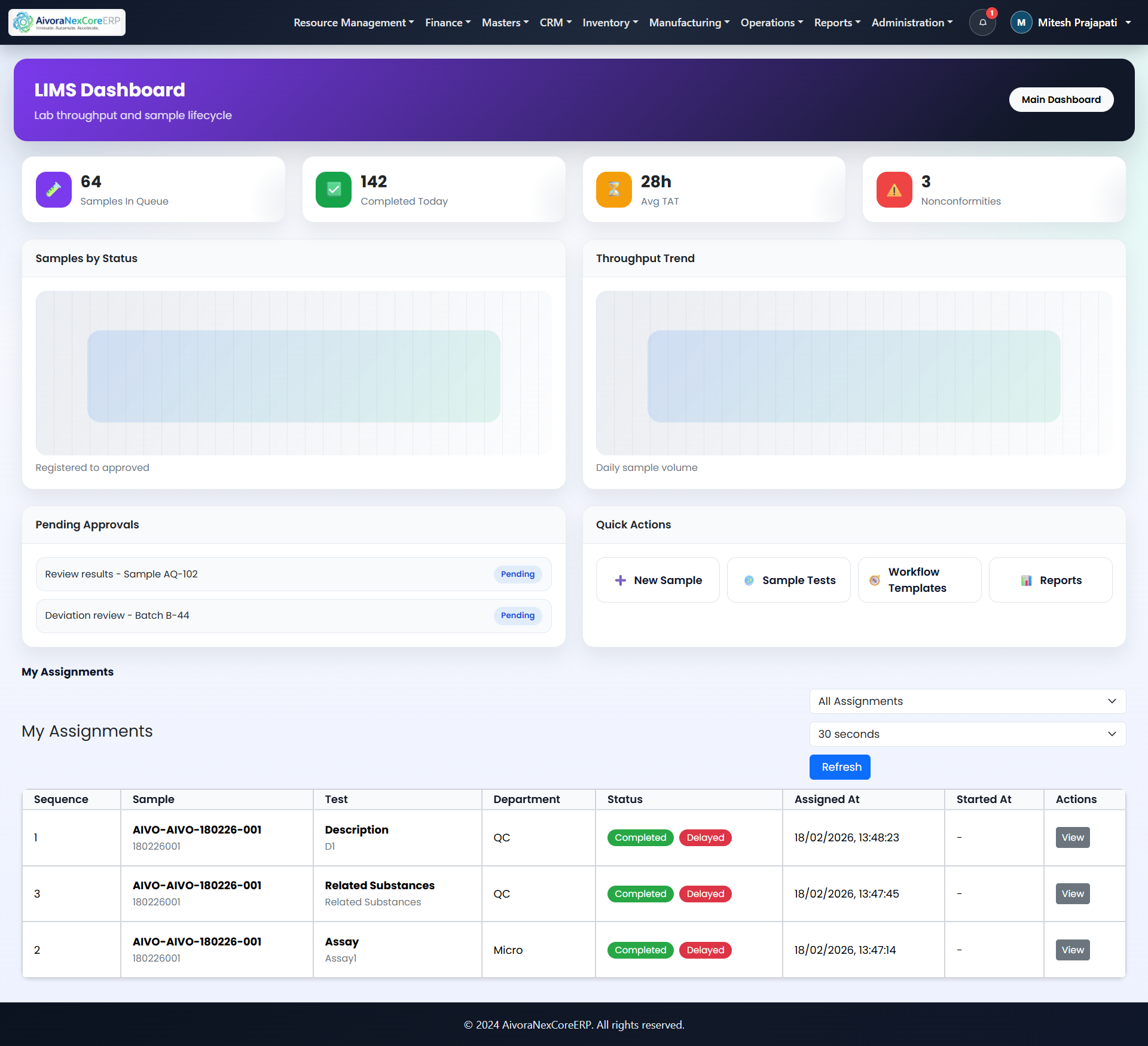 LIMS workflows for sample tracking, test lifecycle, and compliance-ready traceability.